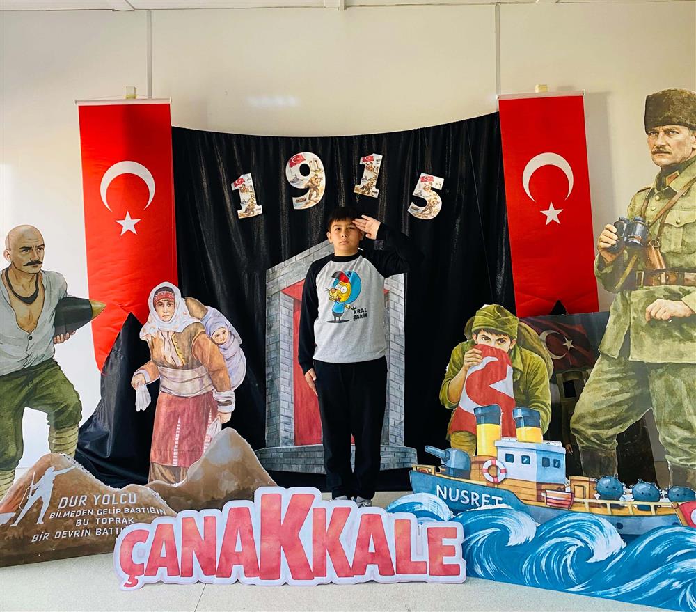 18 Mart Çanakkale Zaferi ve Şehitleri Anma Günü kapsamında anlamlı bir çalışma gerçekleştirdik. Öğrencilerimizle birlikte Çanakkale temalı panomuzu hazırladık. Hazırlanan pano önünde, asker konseptli çerçevelerle fotoğraflar çekilerek o dönemin ruhu yaşatılmaya çalışıldı. Bu süreçte öğrencilerimiz; vatan sevgisi, fedakârlık ve birlik duygusunu daha yakından hissetme fırsatı buldu. Başta Gazi Mustafa Kemal Atatürk olmak üzere tüm kahramanlarımızı saygı, minnet ve rahmetle anıyoruz.