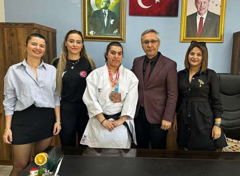 Şampiyona sonrasında Kurum Müdürümüz Sevgi Semizler ve Antrenörümüz Deniz Ürkmez, öğrencimiz Elanur Çiftçi ile birlikte Mahmut Yenen’i makamında ziyaret etmiştir.
